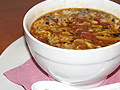 15. Люто-кисела супа пилешко филе, черни гъби, гъби печурки, бамбук, домат, чили, яйце