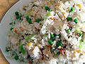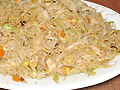 36. Пържен ориз с яйца и зеленчуци ориз, яйца, зеле, моркови, кълнове, царевица, грах