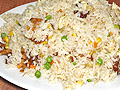 42. Пържен ориз с три вида месо, зеленчуци и яйце ориз, пилешко, свинско, телешко, зеленчуци, яйце