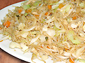 46. Спагети Фан кан със зеленчуци и яйце оризови спагети, зеле, моркови, кълнове, царевица, грах, соеви кълнове, яйце